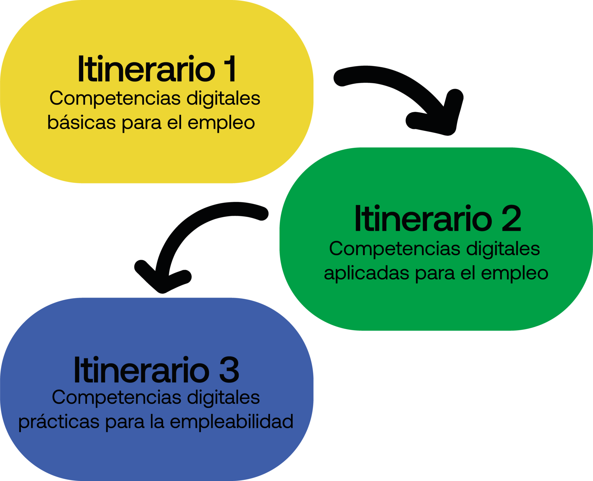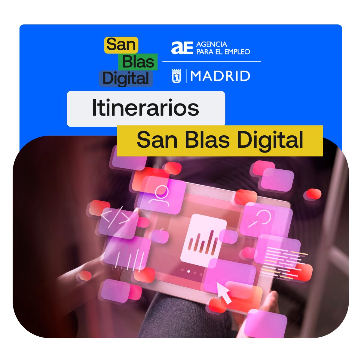 Los Itinerarios San Blas Digital están diseñados para ayudarte a aprender y crecer, con programas prácticos que te preparan para el mundo laboral. Son un conjunto de tres módulos formativos diseñadas para acompañarte paso a paso en tu desarrollo personal, social y profesional. Cada módulo se construye sobre la anterior para darte un recorrido completo.