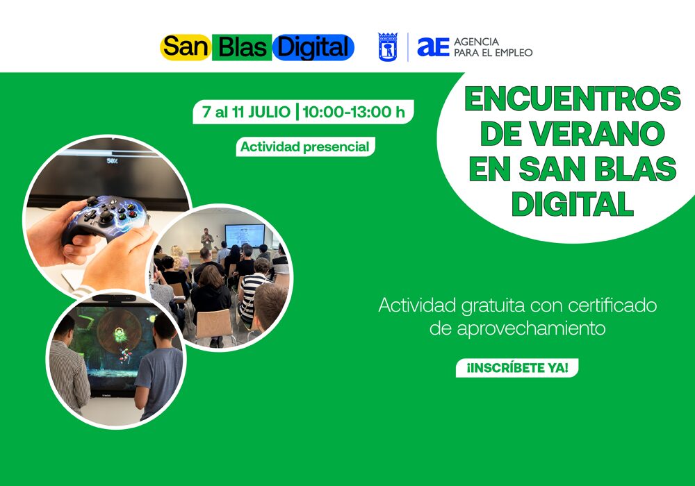 En la Escuela Municipal de Competencias San Blas Digital organizamos los Encuentros de Verano en los que trabajaremos habilidades para la empleabilidad de una manera lúdica, divertida y muy veraniega. Será una actividad totalmente gratuita en la que todos los participantes recibirán un certificado de aprovechamiento.