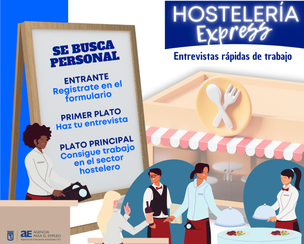 El próximo 12 de marzo, en un horario de 9:30 a 18 horas, la Agencia para el Empleo de Madrid organiza, en colaboración con la Asociación Hostelería Madrid, Hostelería Express.