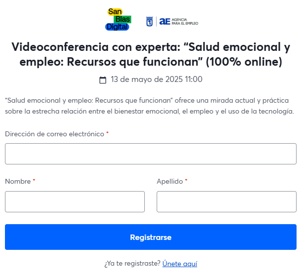 La videoconferencia con experta titulada “Salud emocional y empleo: Recursos que funcionan”, ofrece una mirada actual y práctica sobre la estrecha relación entre el bienestar emocional, el empleo y el uso de la tecnología. En un mundo laboral cada vez más exigente y digitalizado, entender cómo la salud mental influye en el rendimiento profesional y cómo la tecnología puede ser aliada en este proceso es fundamental. Durante la charla, se abordan herramientas concretas y estrategias innovadoras que permiten mejorar la empleabilidad mediante el cuidado emocional, haciendo énfasis en soluciones accesibles y efectivas.